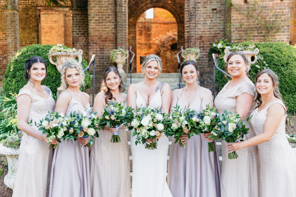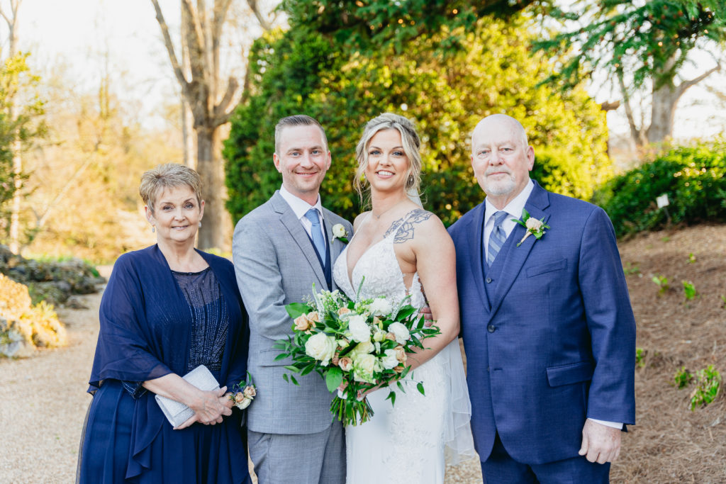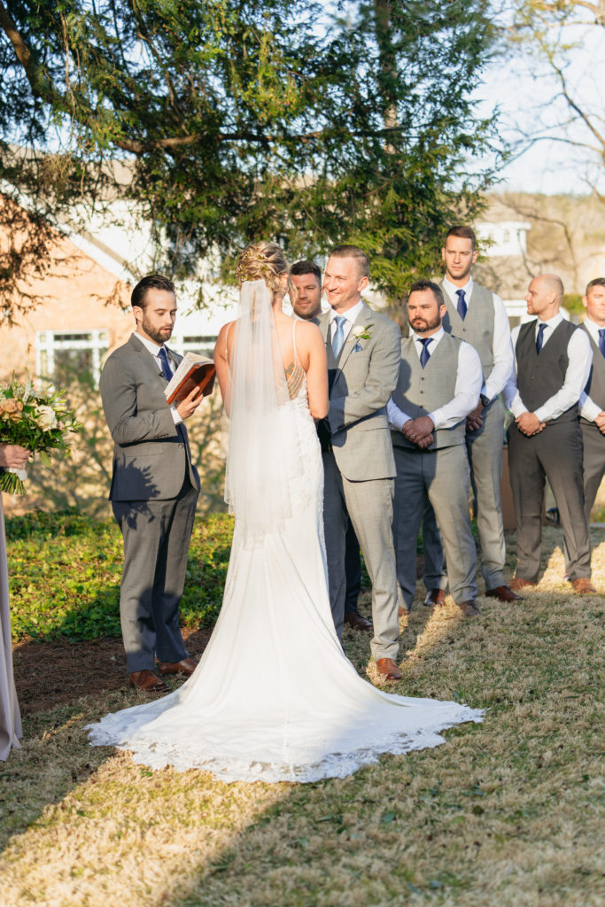 The couple chose an outdoor ceremony on the front museum lawn of Barnsley Resort. The historic buildings and natural landscape provided a breathtaking and timeless backdrop for their heartfelt vows. After the ceremony, we explored the expansive grounds for their elegant outdoor wedding photos.