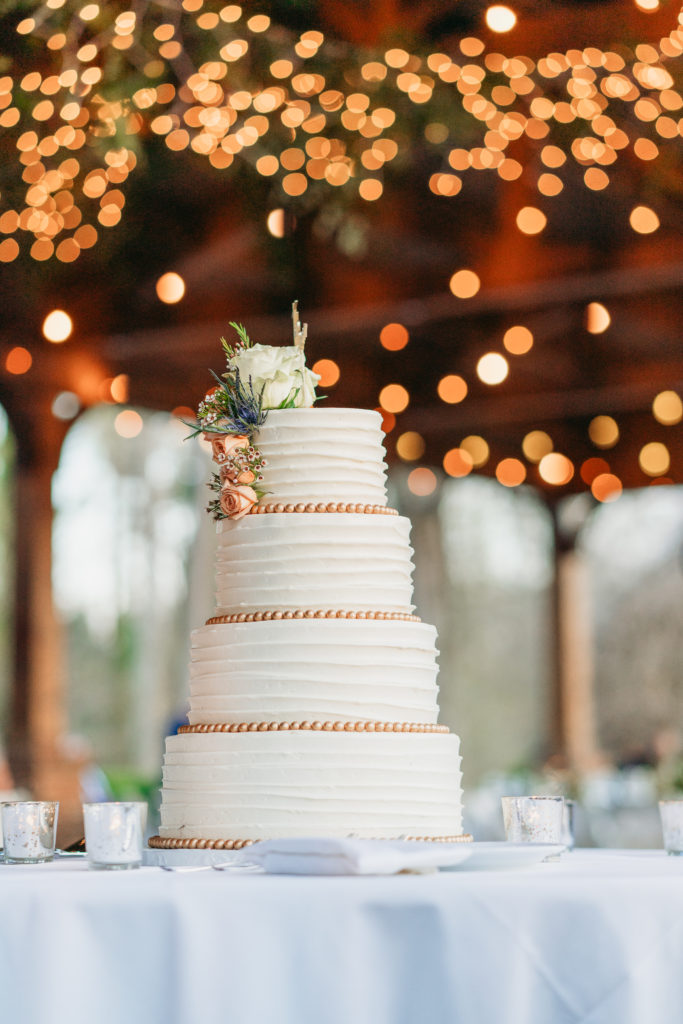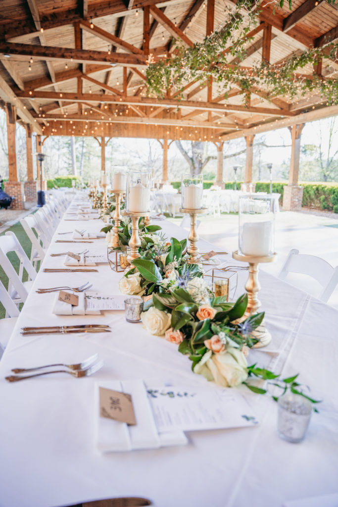 The pavilion reception was the perfect mix of rustic elegance, featuring a vaulted ceiling, grand chandeliers, and warm ambiance.