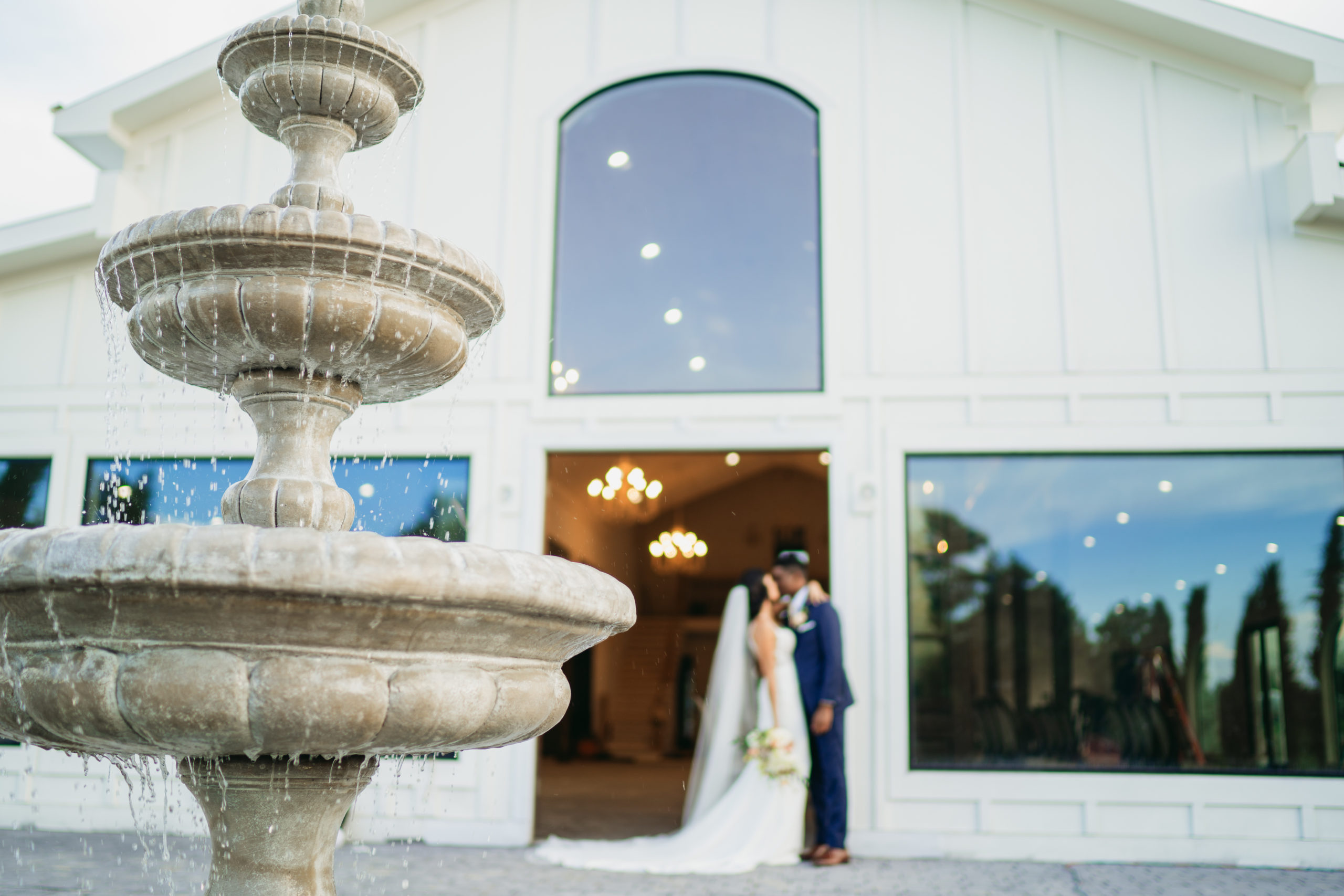 Their modern barn venue offered a monochromatic palette, allowing the lush peach and pink florals to truly shine. The ceremony backdrop was adorned with a lush floral arch, while aisle arrangements lined the walkway, creating an ultra-romantic setting. The combination of elegant seating and soft color accents made this Chattanooga wedding venue a dream location.
