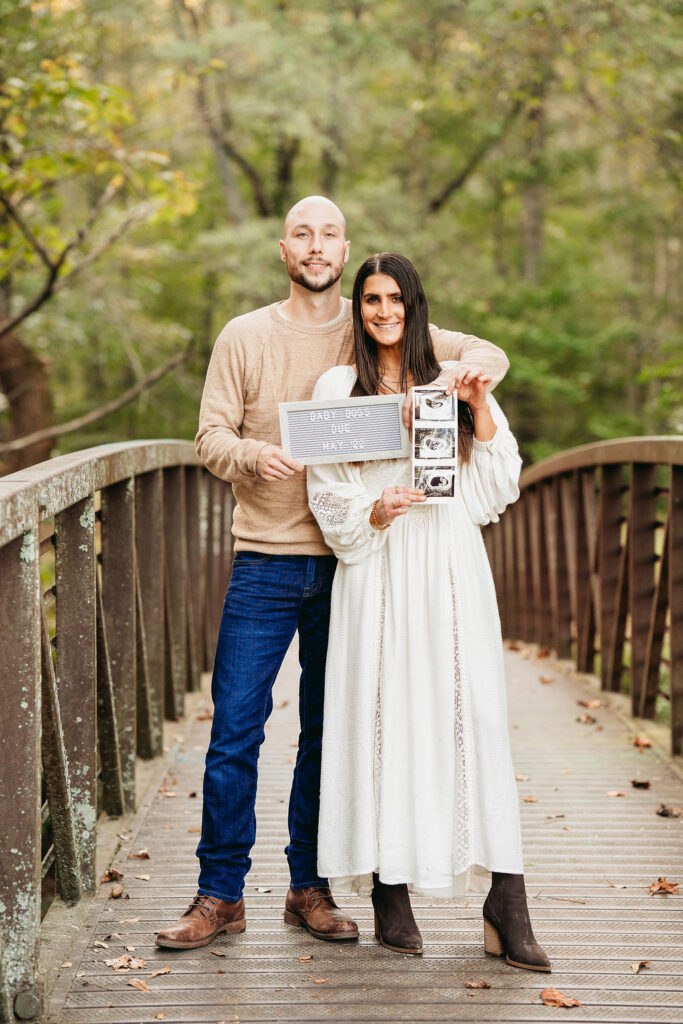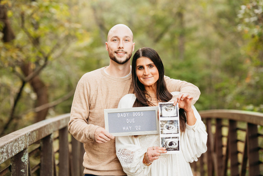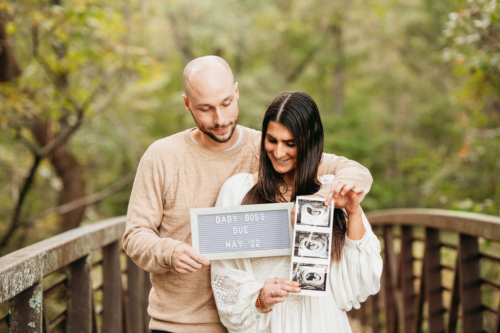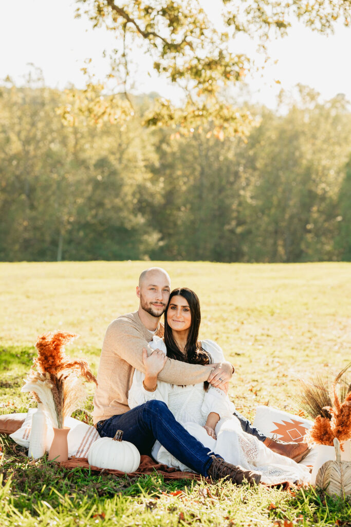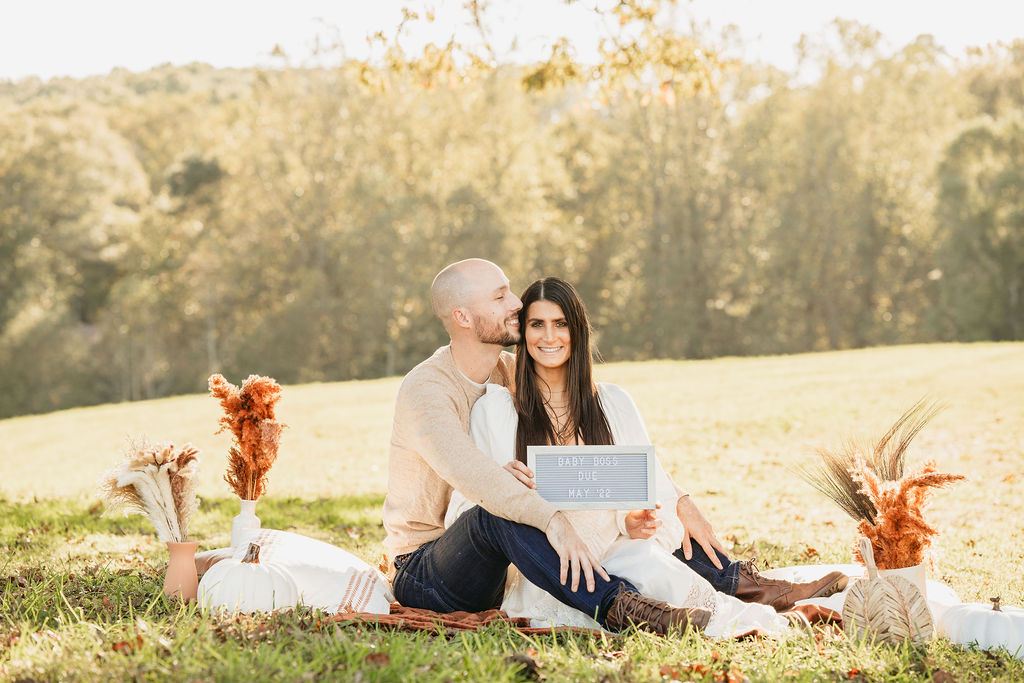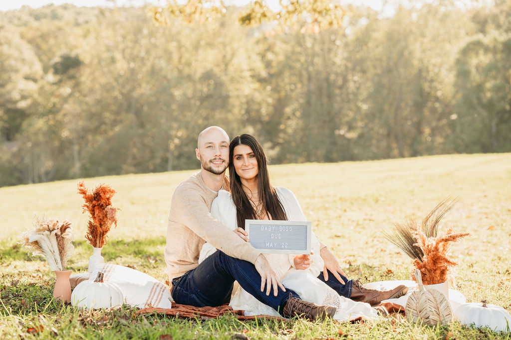 To add a unique touch, we set up a cozy maternity picnic scene, complete with a blanket and seasonal decor, for intimate, up-close shots. One of the sweetest moments was when they held a pegboard displaying their baby’s due date—May 2022! It was the perfect way to share their excitement with friends and family.