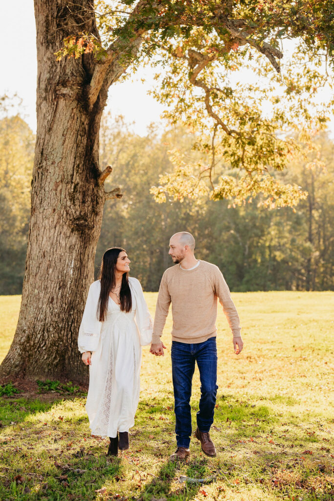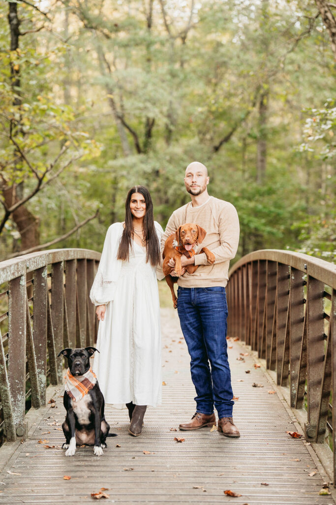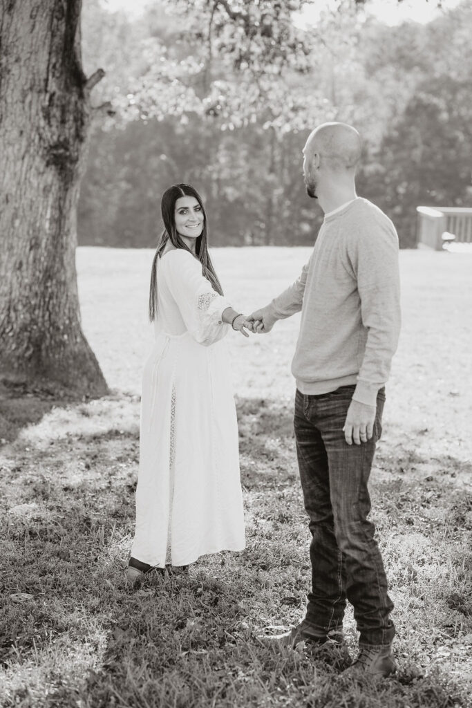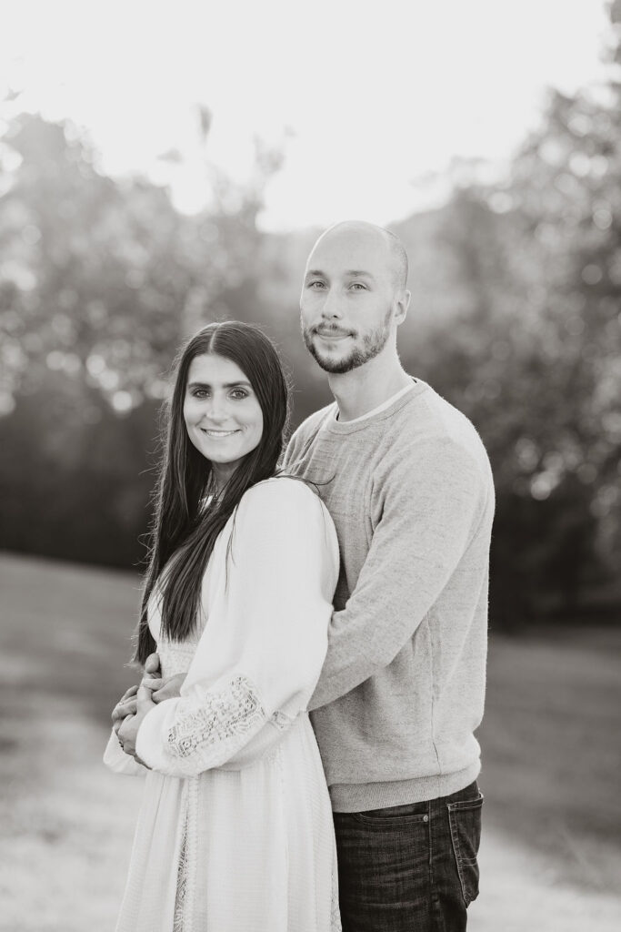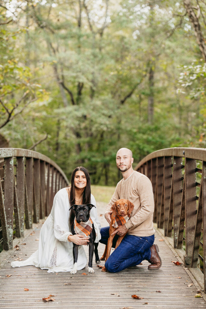 We started with casual, candid shots around the park, taking advantage of the stunning fall foliage. We were lucky—the trees were just beginning to turn, adding a golden glow to the backdrop. Caitlin and Kyle’s playful energy made for fun and relaxed moments, from dancing on the lawn to exploring a charming wooden bridge.