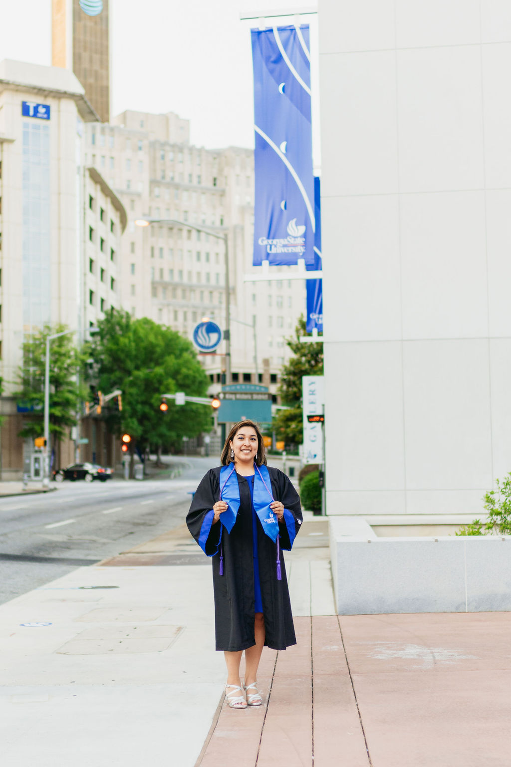 For Terezy’s session, we focused on classic graduation poses while also capturing heartfelt moments with her biggest supporter—her mom! It was so sweet to see their bond and document this shared celebration. We strolled around Georgia State University’s campus just before sunset to take advantage of that dreamy golden-hour glow. The light, the energy, and the joy in the air made this session absolutely perfect!