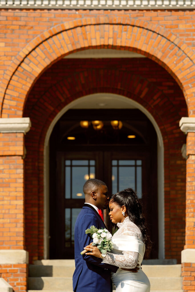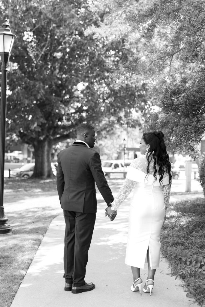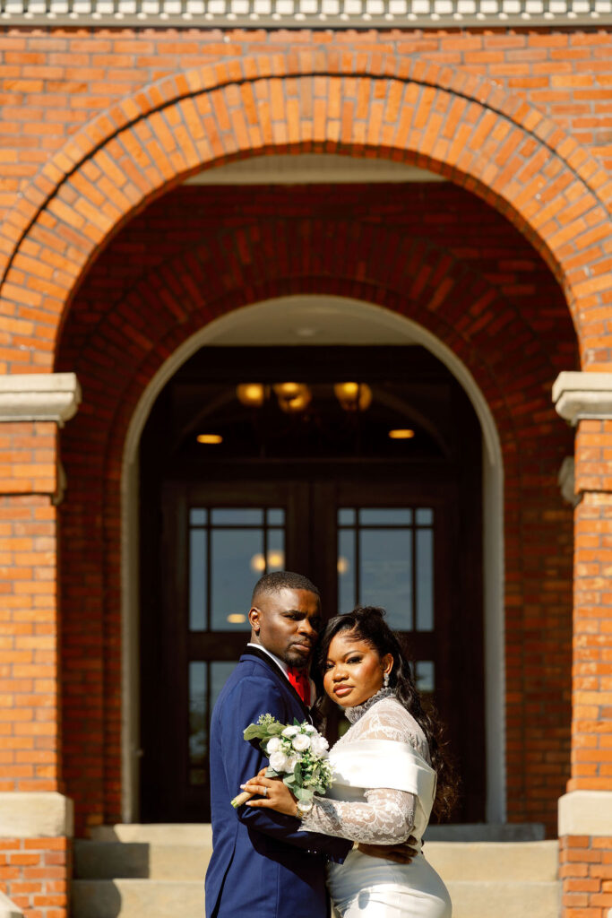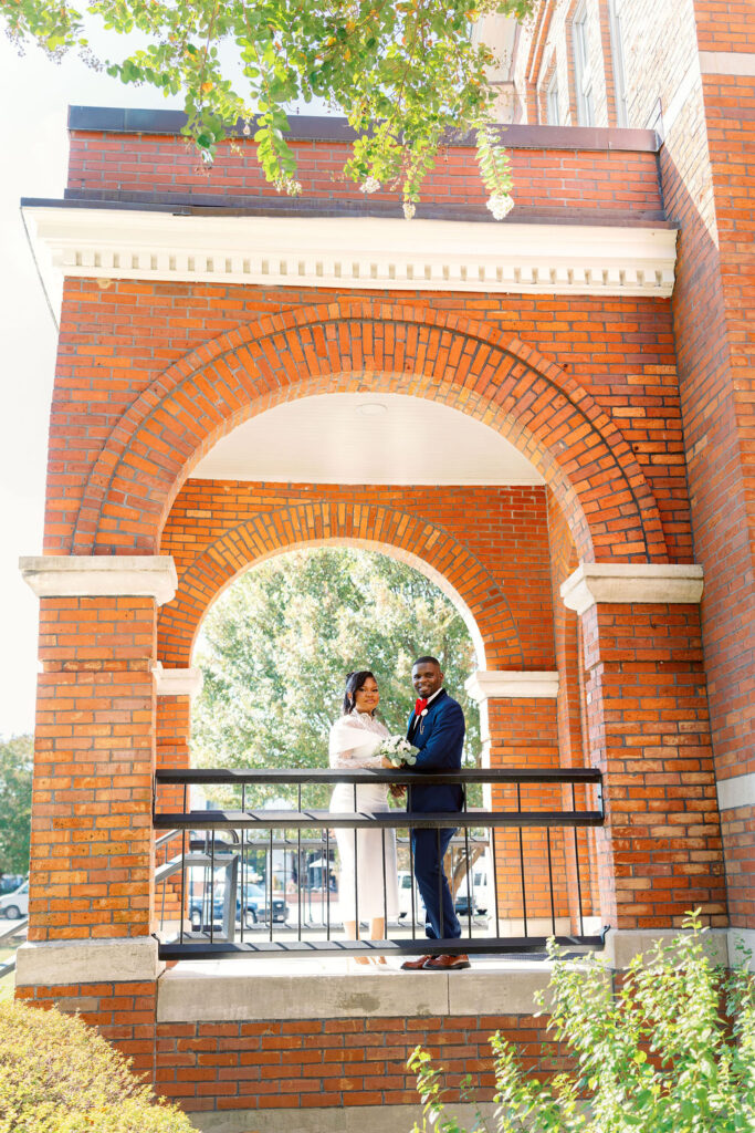 After the ceremony, we explored the courthouse grounds for portraits. The surrounding brick paths, stately columns, and manicured greenery offered a variety of classic backdrops — all within steps of the ceremony location.