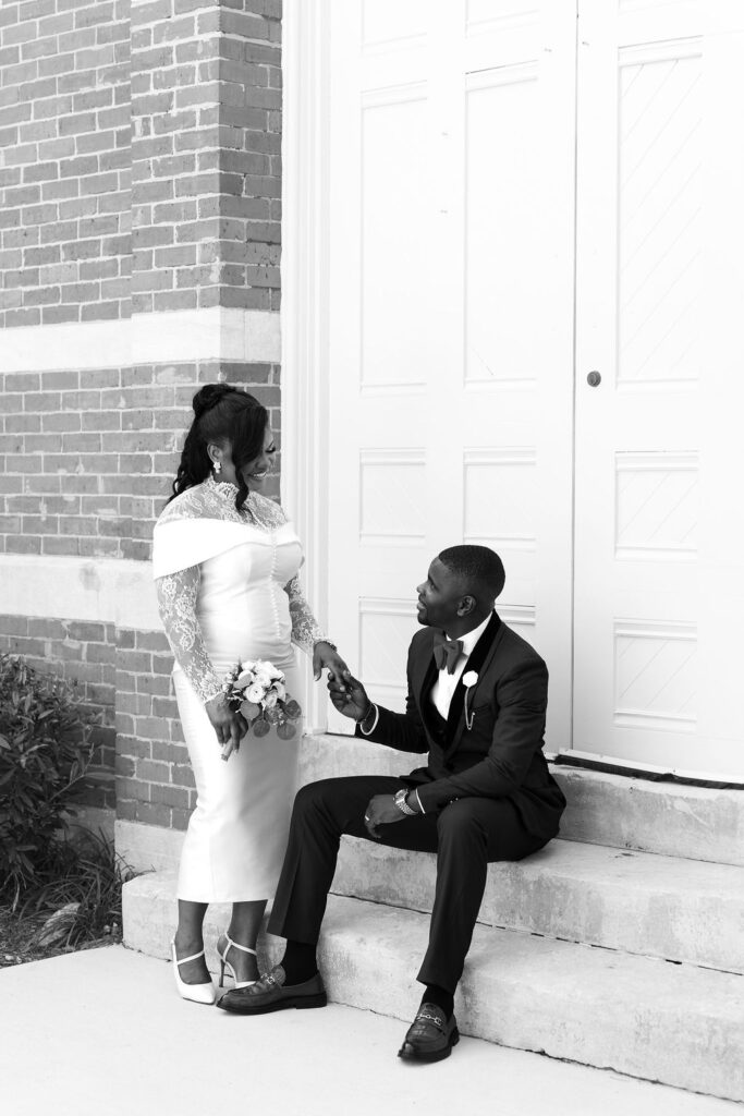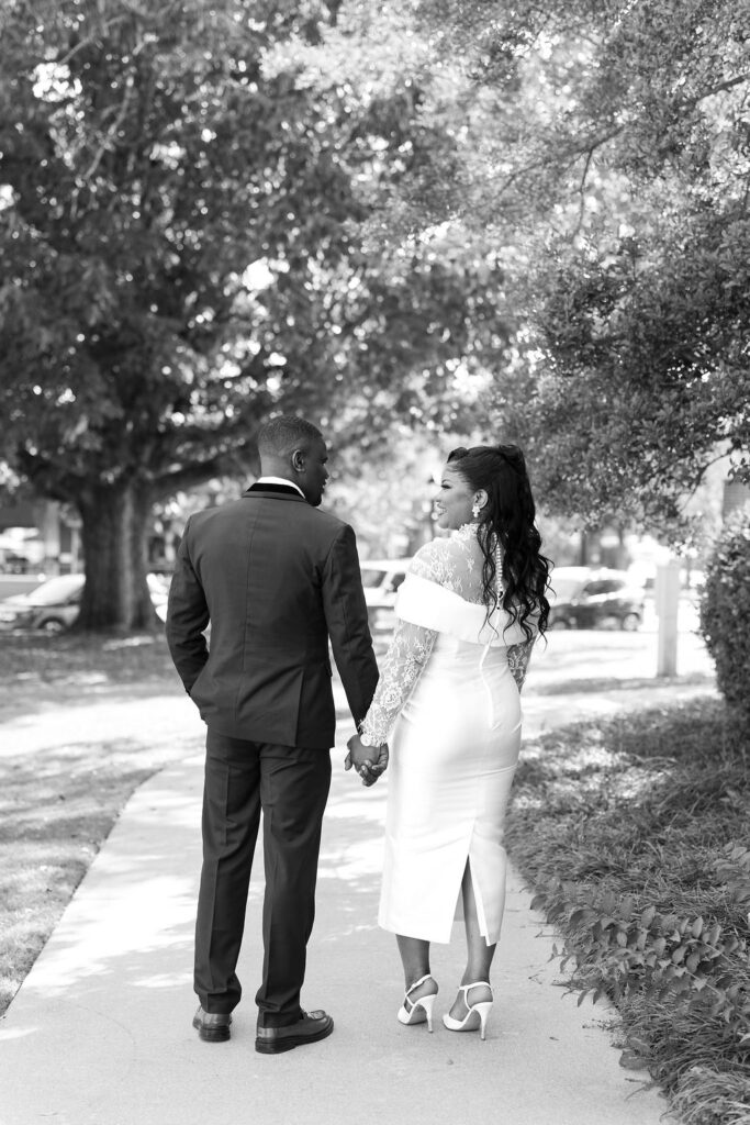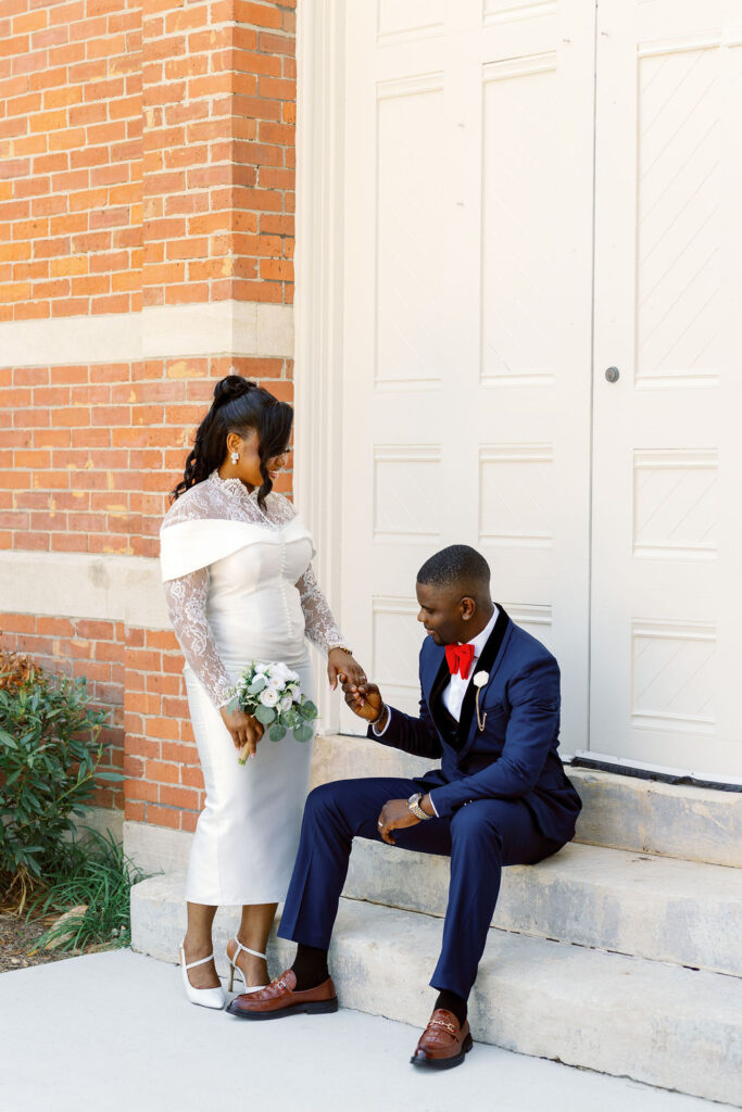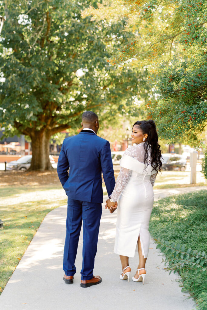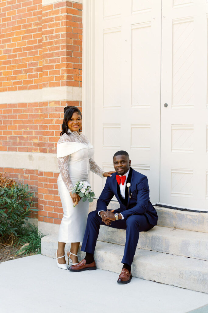 After the ceremony, we explored the courthouse grounds for portraits. The surrounding brick paths, stately columns, and manicured greenery offered a variety of classic backdrops — all within steps of the ceremony location.