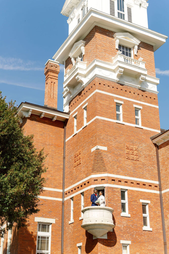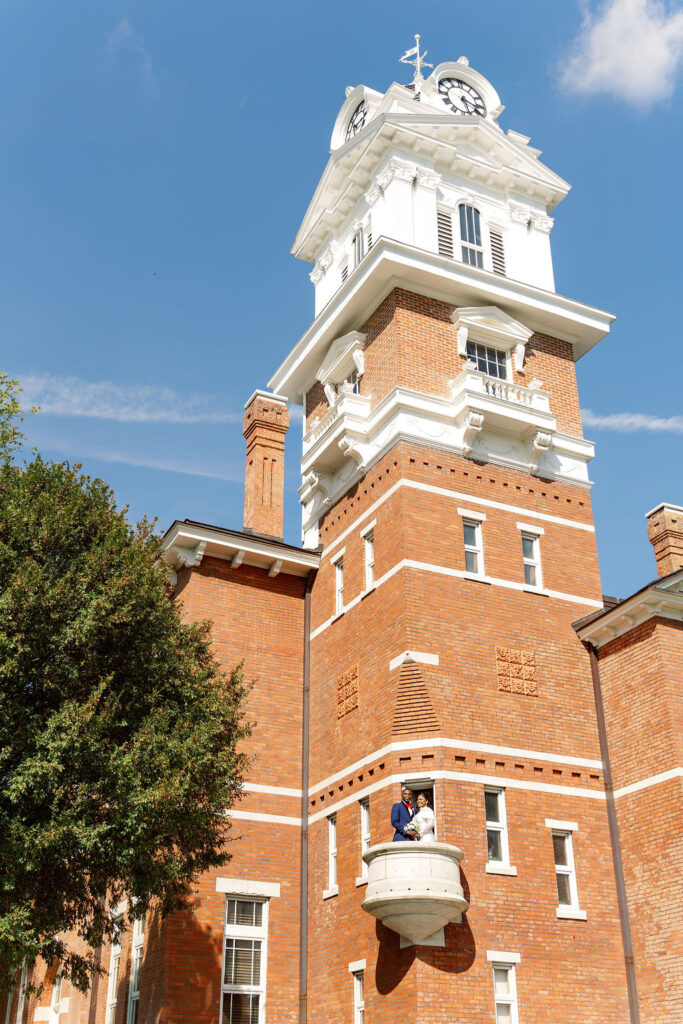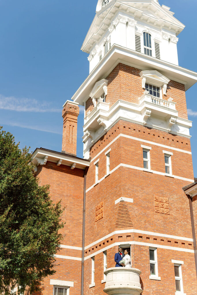 The Gwinnett Historic Courthouse is one of the most stunning courthouse wedding locations in the Atlanta area. With its white columns, brick walkways, and historic charm, it provides a refined backdrop that feels elevated while still remaining accessible and stress-free.