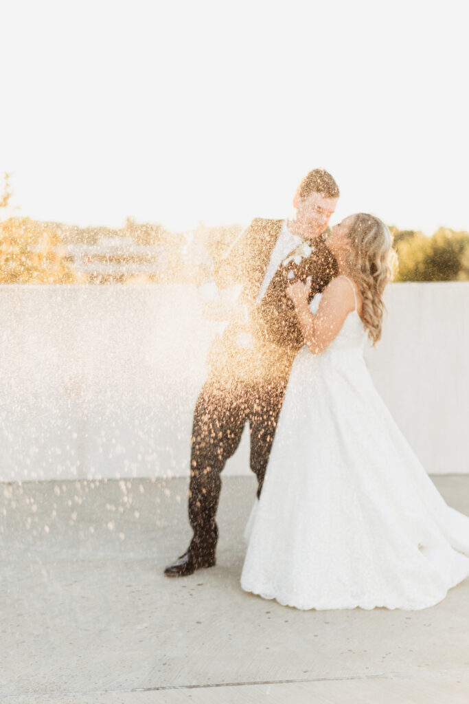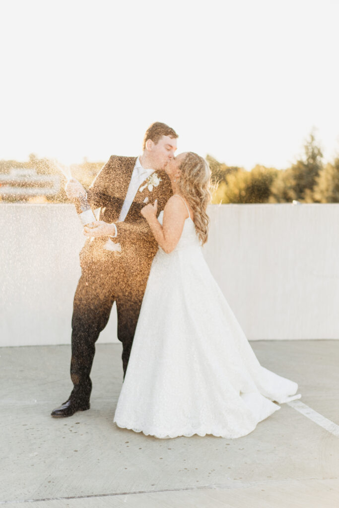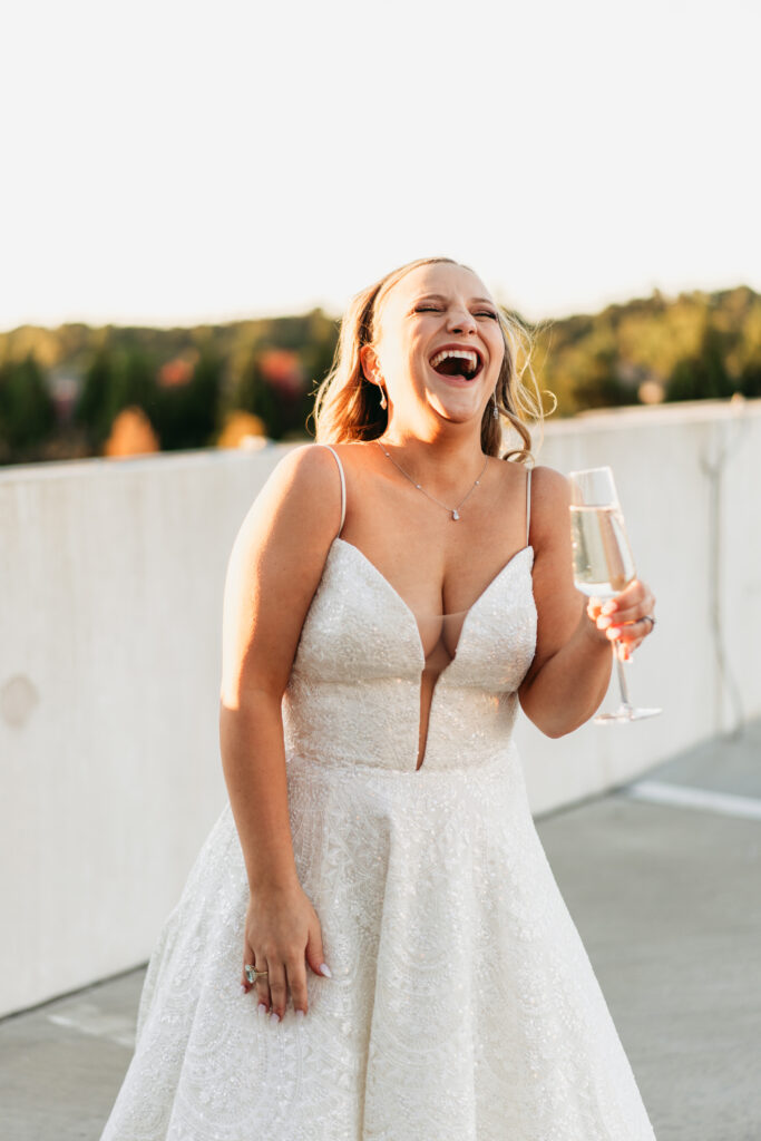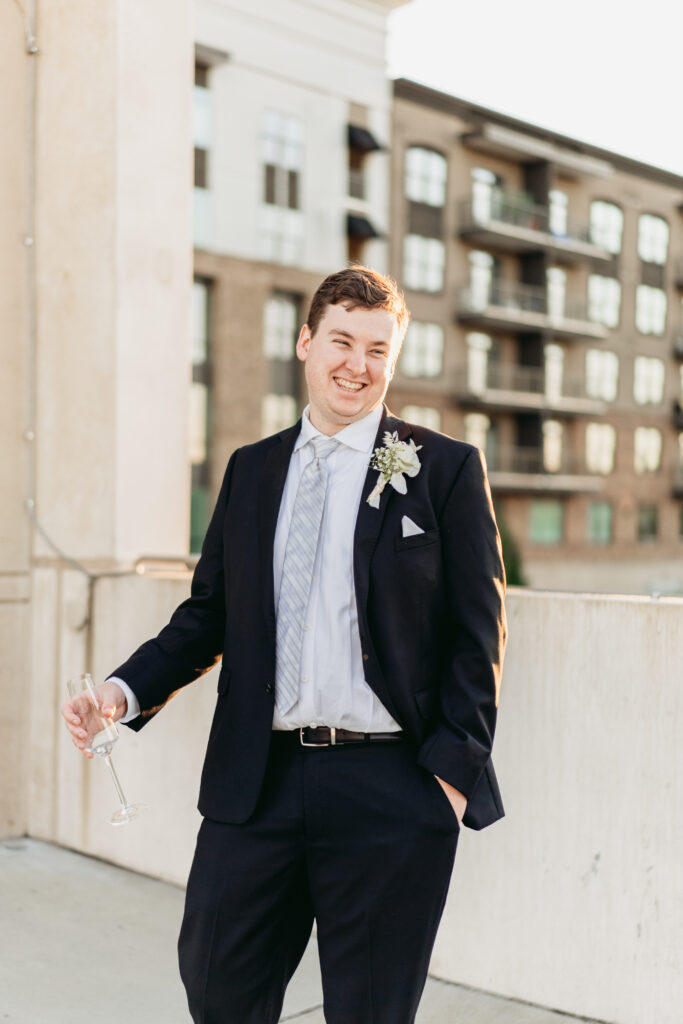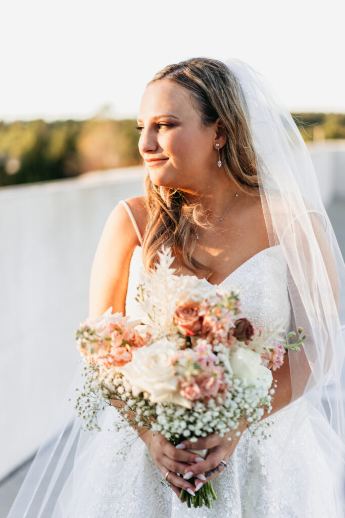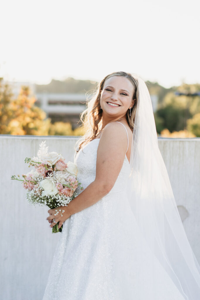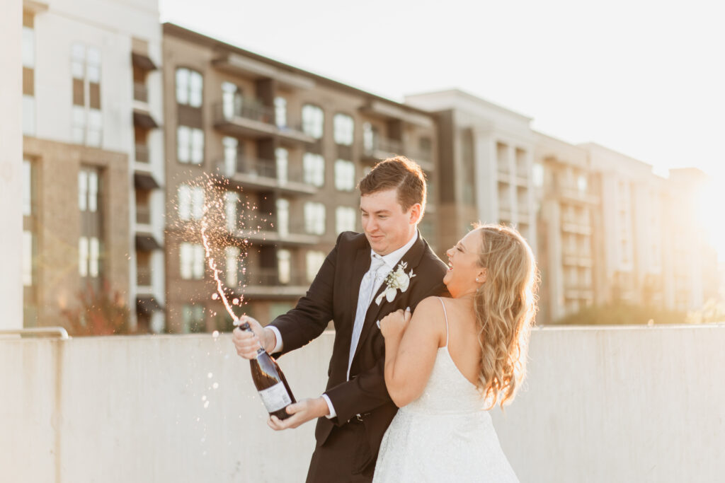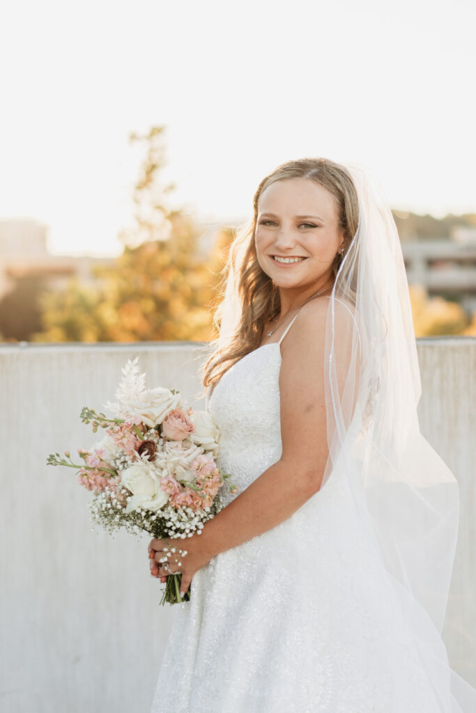 One of the best features of hosting a wedding at Avalon in Alpharetta is the beautiful skyline just steps away. Erin and Dominic stepped outside during golden hour for their rooftop portraits, capturing a mix of soft sunset light and modern city views.