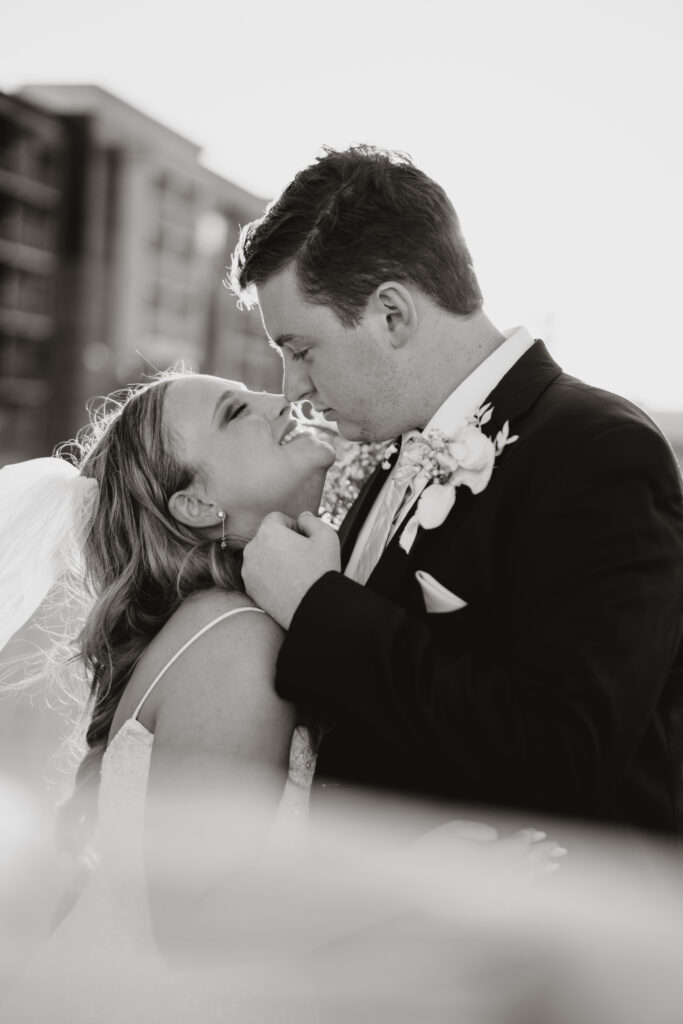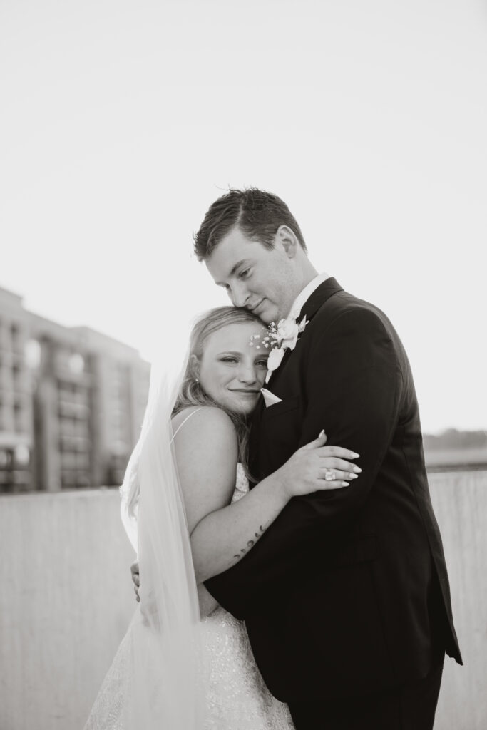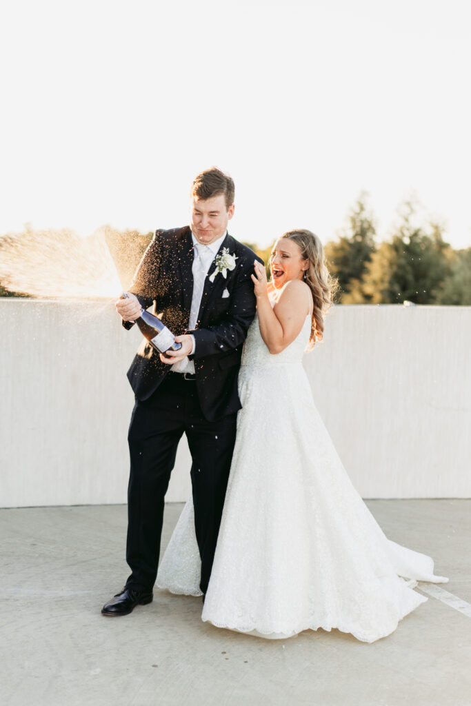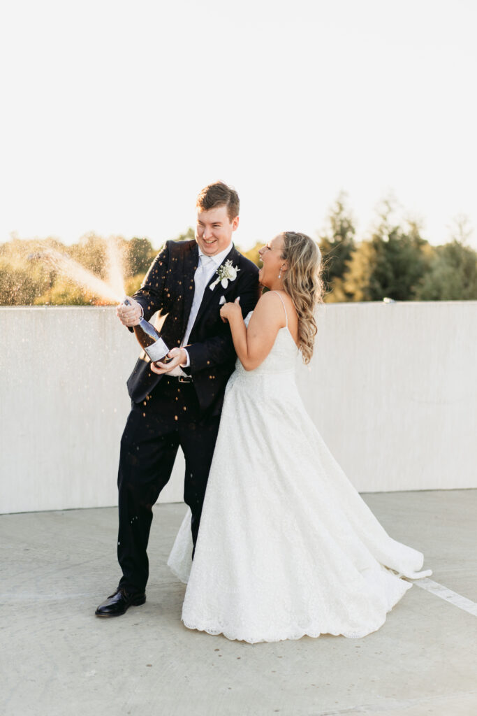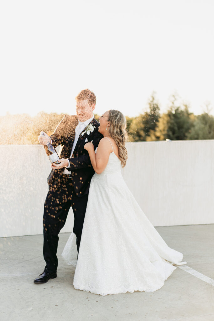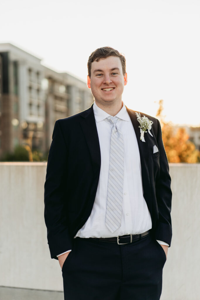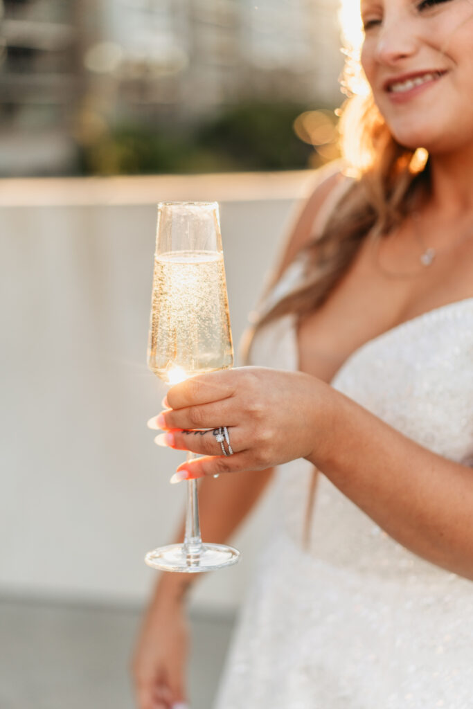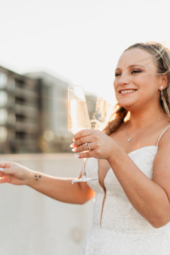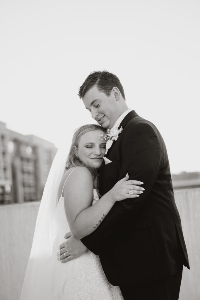 One of the best features of hosting a wedding at Avalon in Alpharetta is the beautiful skyline just steps away. Erin and Dominic stepped outside during golden hour for their rooftop portraits, capturing a mix of soft sunset light and modern city views.
