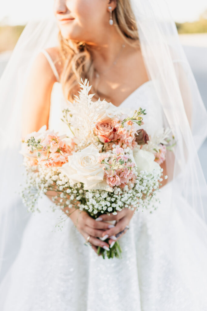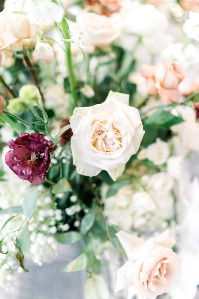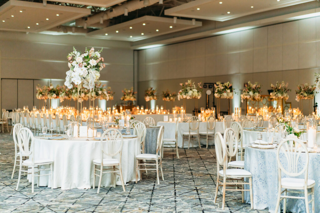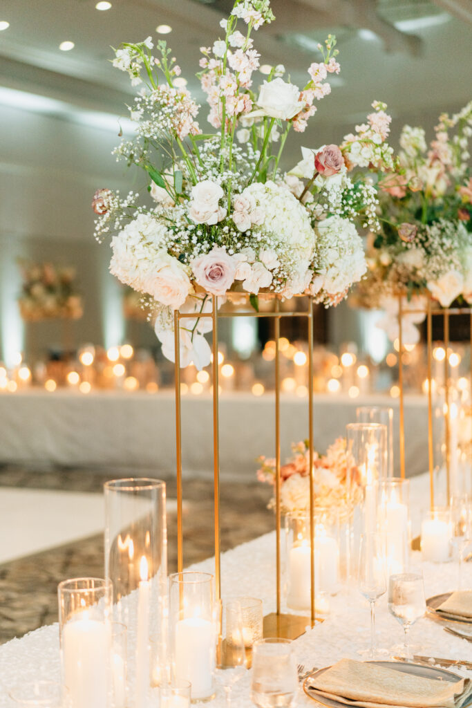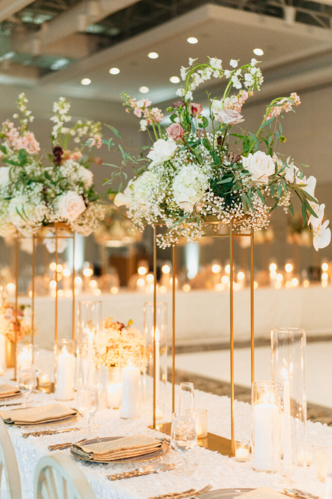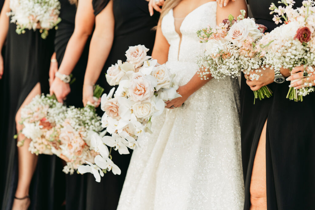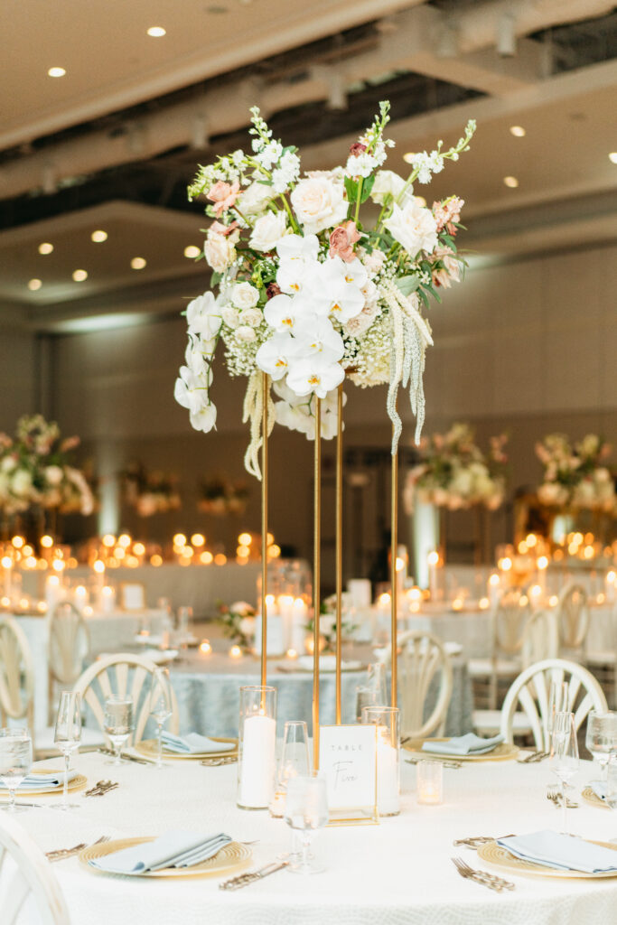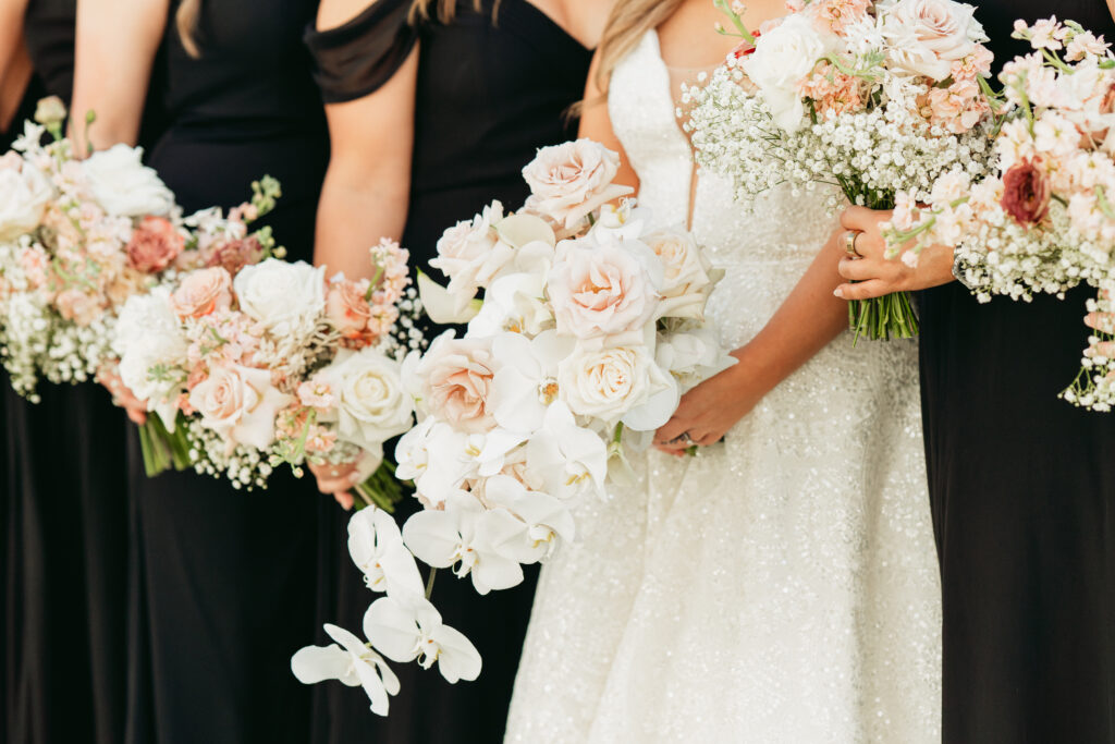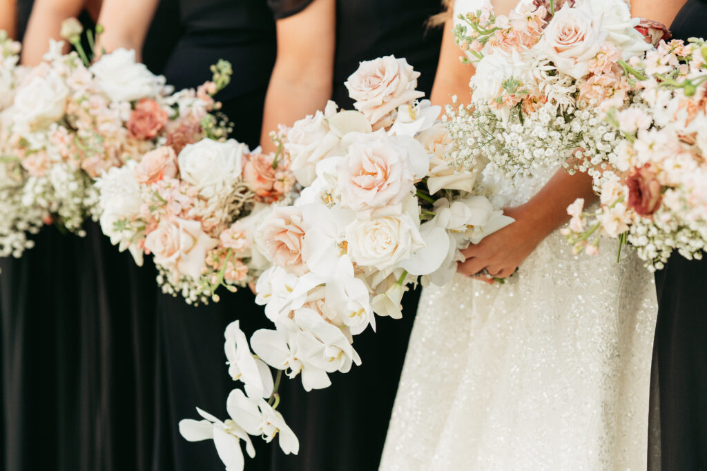 Every detail of this wedding was thoughtfully designed to feel warm, elegant, and refined. Soft blush roses, white orchids, and flowing greenery filled the ceremony and reception spaces, adding texture and romance throughout the day.