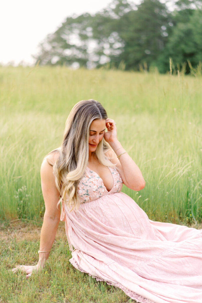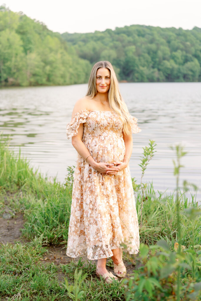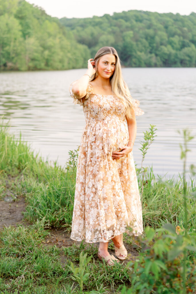 Jessica’s maternity session took place just outside of Marietta, Georgia, surrounded by soft greenery and warm evening light. This peaceful outdoor location created the perfect setting for a session focused on connection, emotion, and celebrating motherhood.