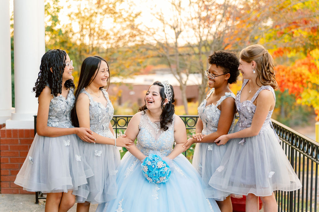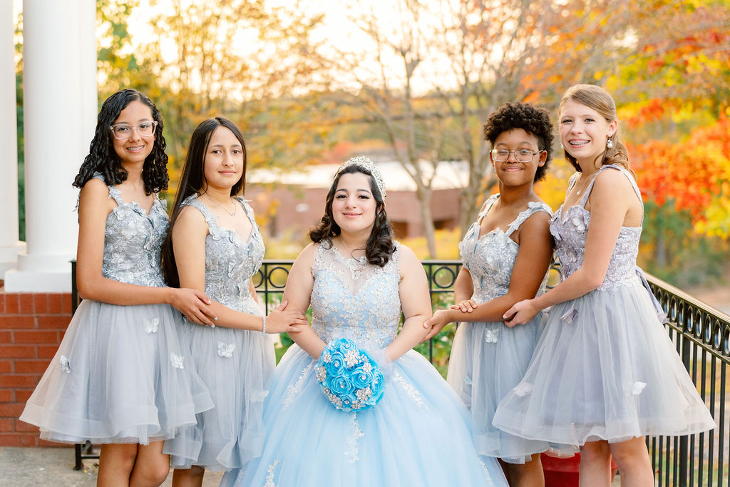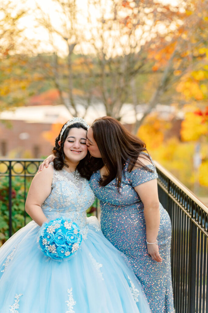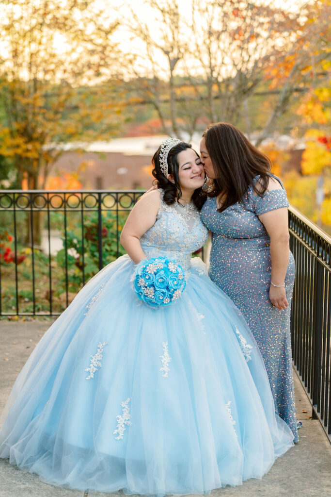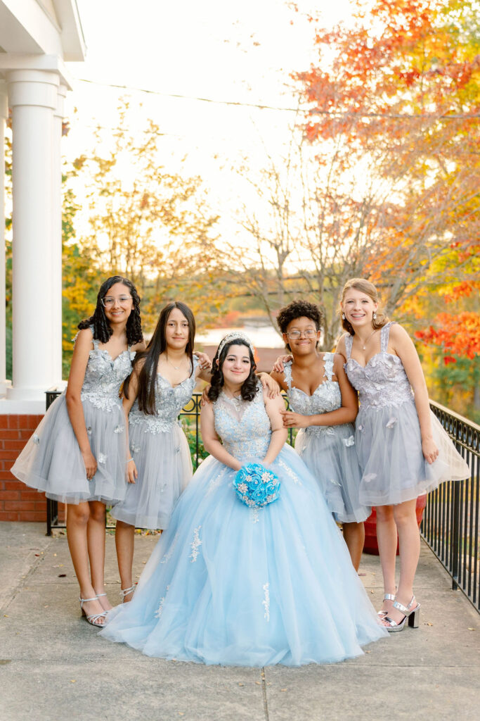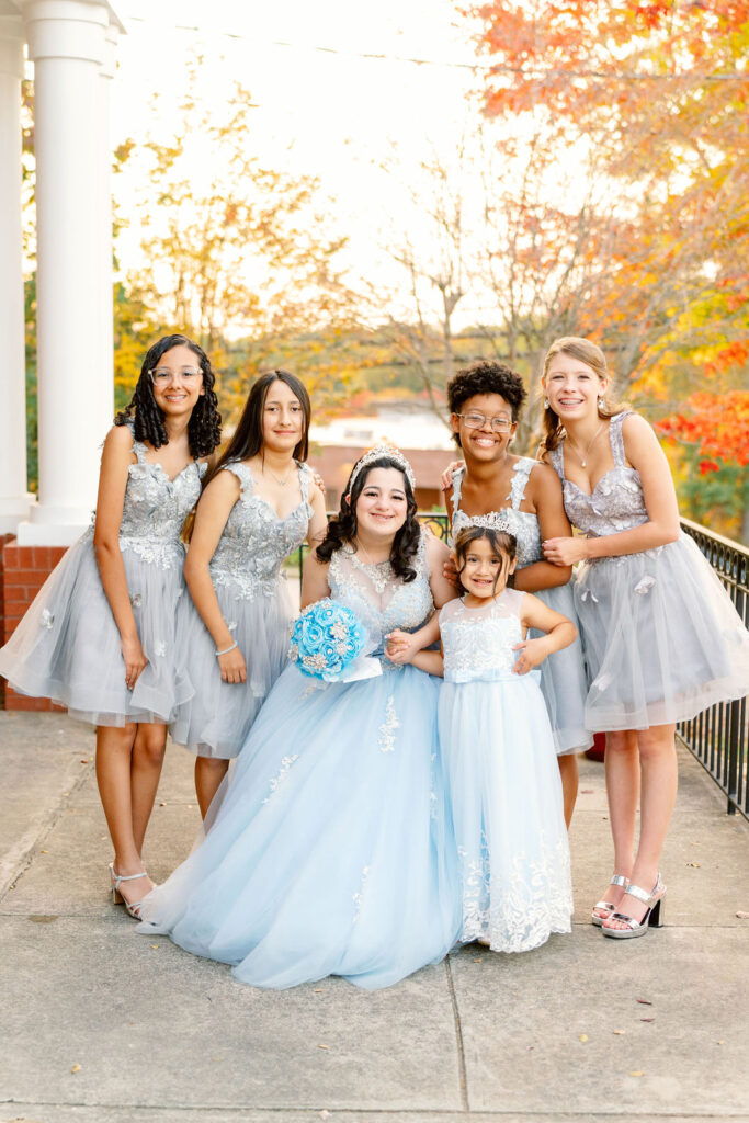 Finding beauty in unexpected places is one of the best parts of quinceañera photography. With the right lighting and composition, we created a scene worthy of a fairytale. The colorful fall leaves framed Dani perfectly, while her soft blue dress drew attention to her elegant presence.